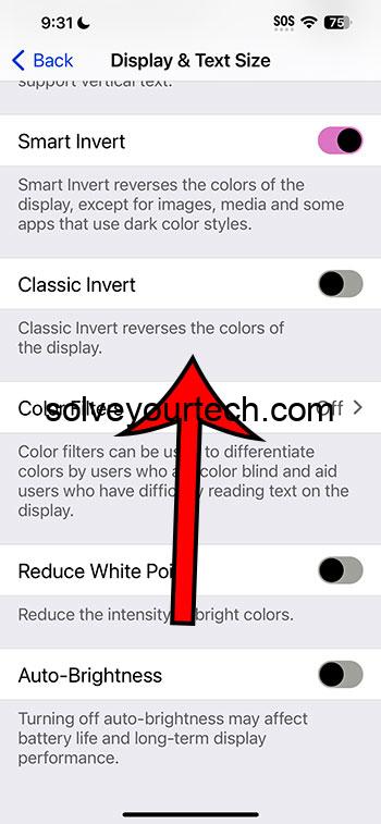 「Smart Invert」は、画像、メディア、ダークカラースタイルを使用するいくつかのアプリを除き、ディスプレイの色を逆転させます。 「Classic Invert」は、画面上のすべての色を完全に逆転させます。