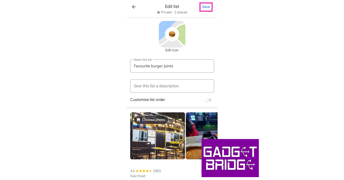 Googleマップにリストを作成するには、保存[新しいリスト]オプションをタブしてタップします。タイトルと説明を追加したら、リストに場所を追加できます。