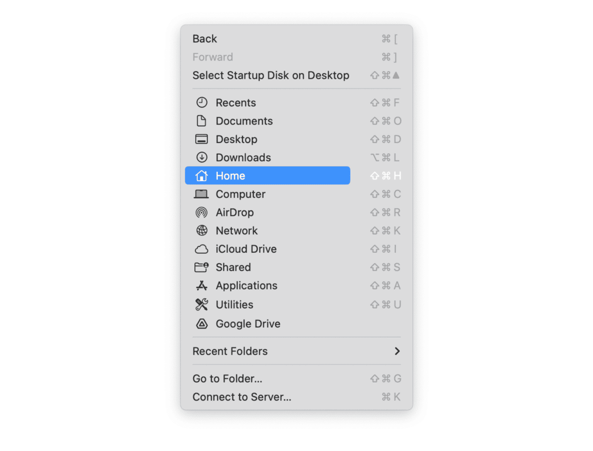 定期的に必要なすべてのショートカットが必要な場合は、Finderメニューに家に置くことは、ドキュメントからダウンロード、そして再び戻って、フォルダー間を簡単に迅速かつ簡単にジャンプしやすくする最も効果的な方法の1つです。