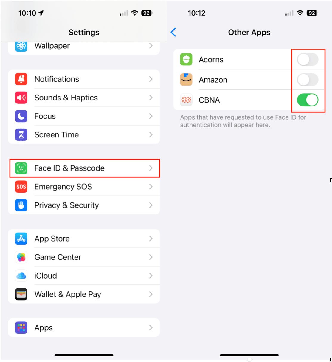 - Face IDを使用してロックを解除する特定のアプリに切り替えます。