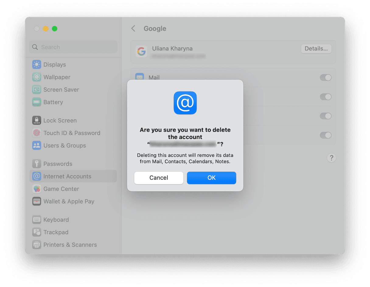 アカウントを削除すると、MacのGoogleアカウントからGmail、連絡先、カレンダー、またはメモにアクセスできなくなります。