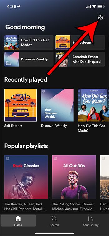 - を選択します家左下のタブで、右上隅のギアアイコンをタップします。
