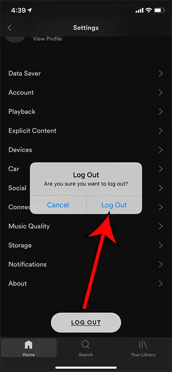 ステップ4:タップしますログアウト繰り返しますが、アカウントからサインアウトすることを確認してください。