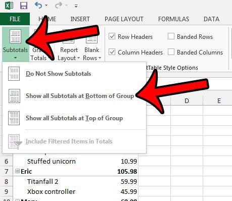 クリックしてこれを行いますデザインウィンドウの上部にあるタブをクリックします潜水艦のボタンレイアウトリボンのセクション、クリックしますグループの下部にあるすべての小計を表示しますオプション。