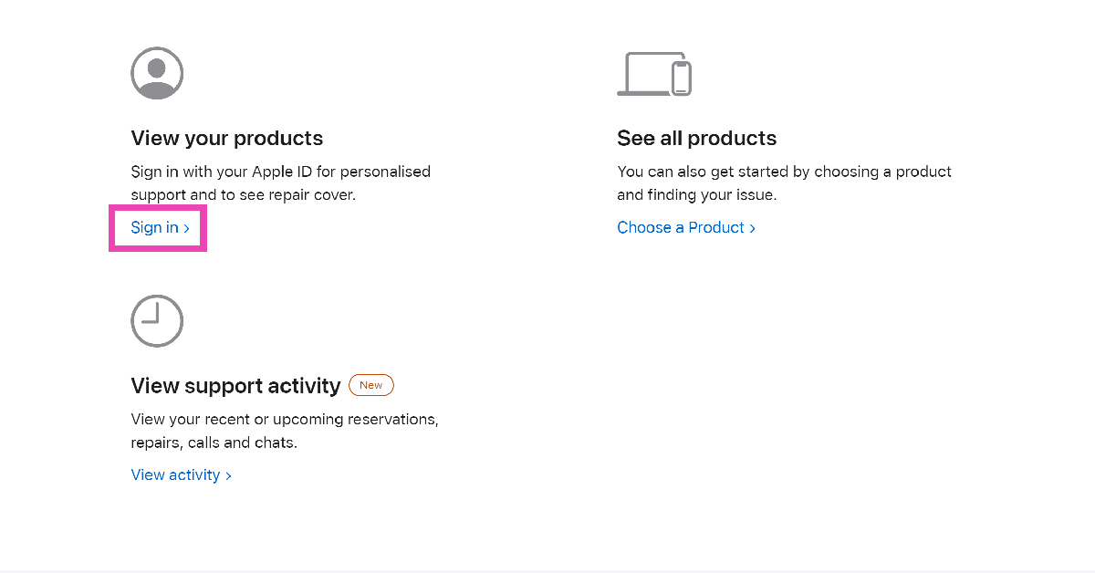 ステップ1:に行きますAppleサポートページそしてサインインApple IDを使用します。