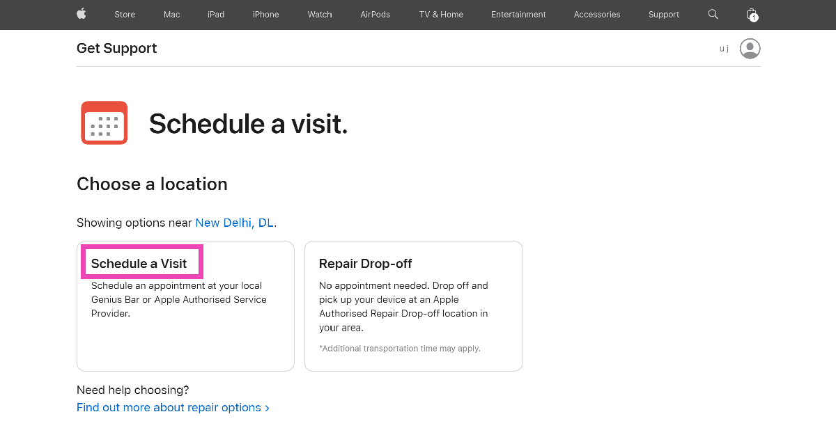 ただし、デバイスでハードウェア関連の問題に直面している場合は、Apple StoreまたはAppleが認可されたサービスセンターにアクセスして修正する必要があります。予約をするプロセスは非常に簡単です。