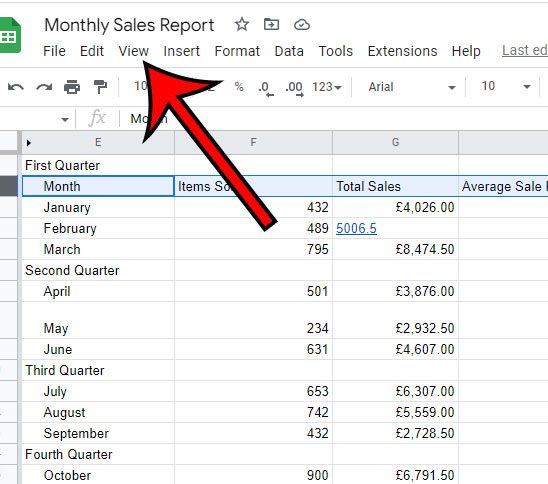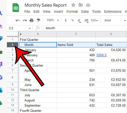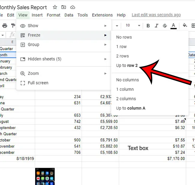 私たちのガイドは、これらの手順の写真を含む、Googleシートに行をフロートする方法に関する追加情報を以下に続けます。