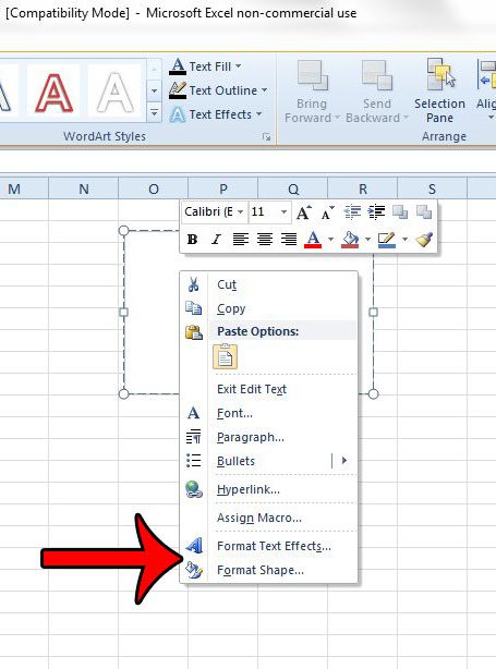 さらに、テキストボックスの内側を右クリックしてから、テキスト効果のフォーマットまたはフォーマット形状その他の設定のオプション。