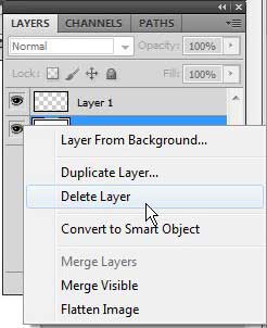 ステップ1:を右クリックします背景のレイヤーレイヤーウィンドウの右側にあるパネル、クリックしますレイヤーを削除しますオプション、次に、レイヤーを削除することを確認します。