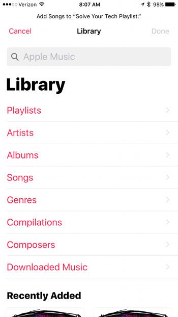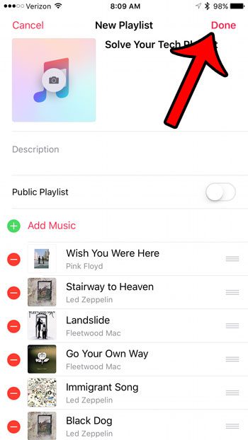 ステップ8:赤に触れます終わりプレイリストに曲の追加が終了したときに、画面の右上隅にあるボタン。