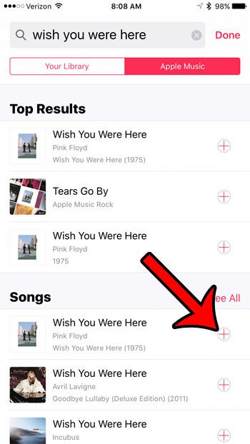 ステップ7:タップします+プレイリストに追加したい曲の右側のアイコン。プレイリストに入れたい追加の曲ごとに手順6と7を繰り返します。