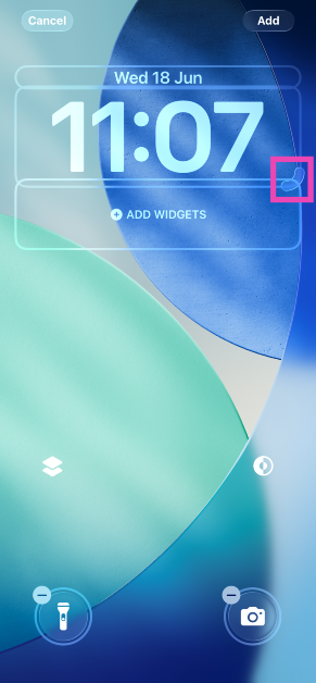 ロック画面をロングプレスし、編集する壁紙を選択し、「カスタマイズ」をタップします。コントロールのマイナスサインを押して、それを削除します。プラスアイコンをタップして、新しいコントロールを追加します。