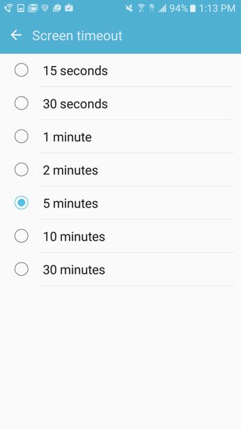 ステップ5:画面を自動的にロックする前に、電話を待機させたい時間の左側の円をタップします。