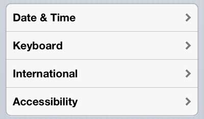 - [一般的な設定]ページから、[日付と時刻]オプションを見つけるまで下にスクロールして選択します。