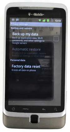 幸いなことに、G2でマスターリセットを行うためのツールはデバイスに含まれているため、追加のプログラムやユーティリティを使用して、携帯電話を「元の工場出荷時の設定に復元する必要はありません。