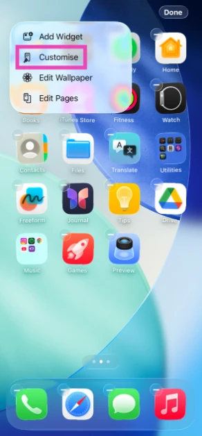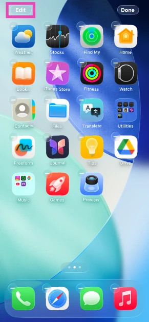 ステップ 1: ロックを解除するあなたのiPhoneと空いている場所を長押ししますホーム画面で。