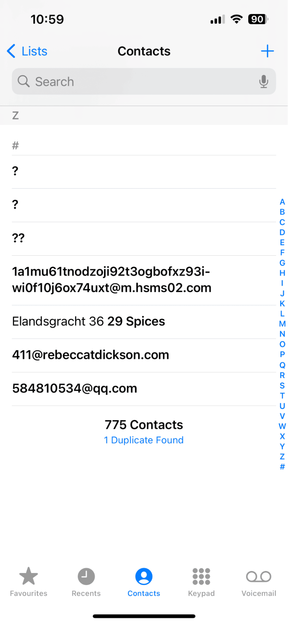 これは、以前に重複した連絡先の提案を以前に無視していた場合に発生する可能性があります。連絡先リストの最下部にスクロールするか、#キーを押します。