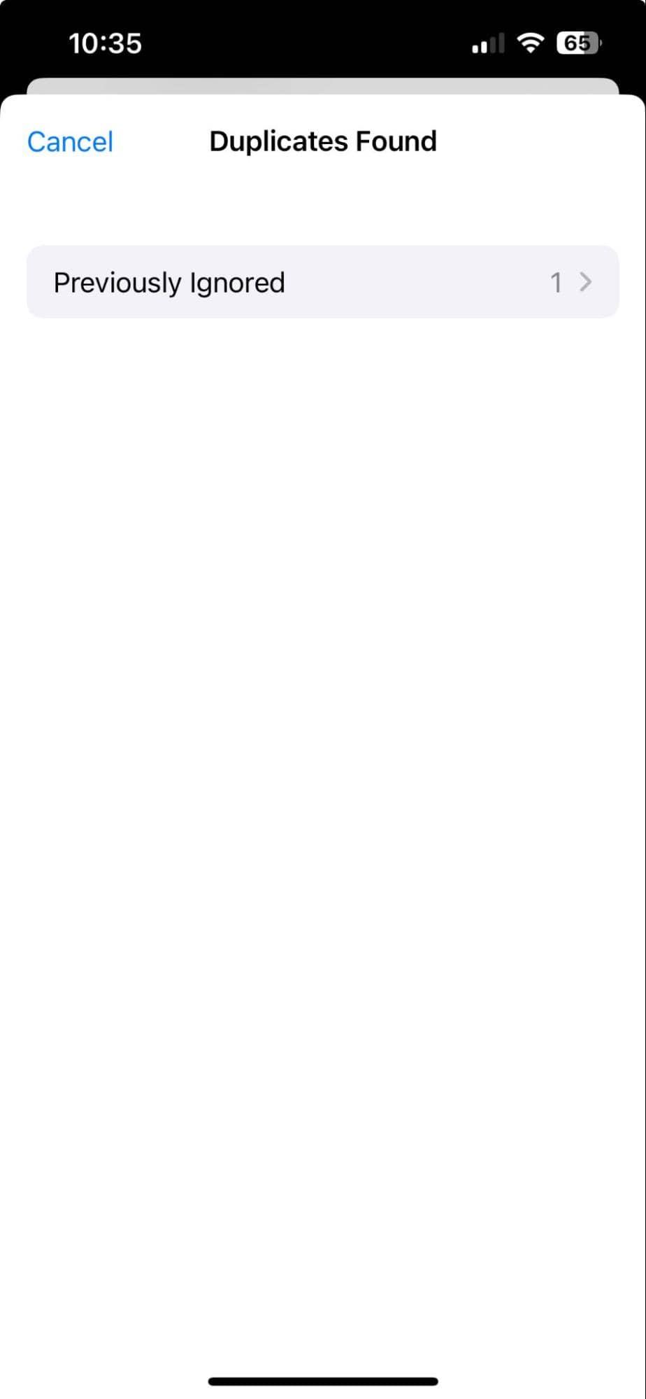 画面の下部には、連絡先の合計数で、重複する連絡先数が表示されます。これを選択して連絡先をマージします。