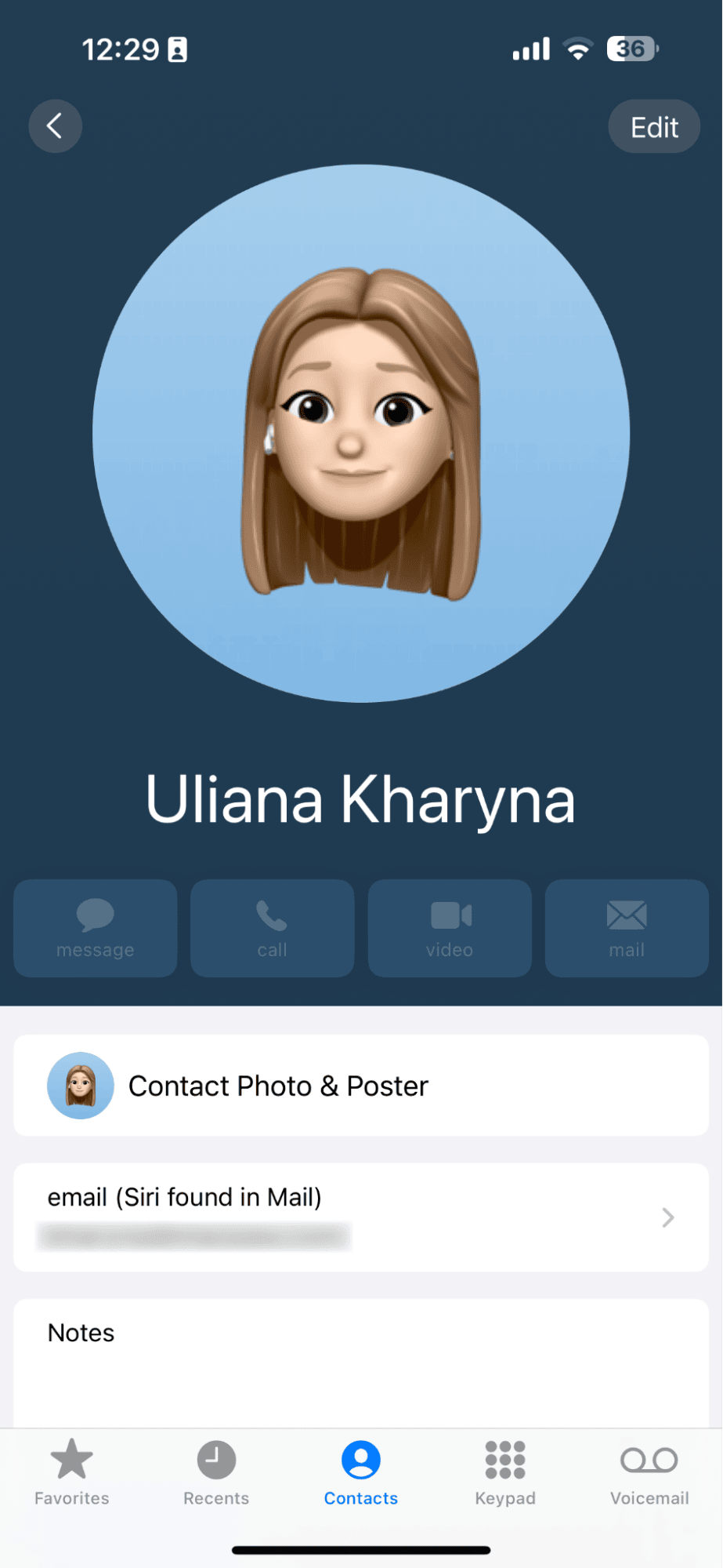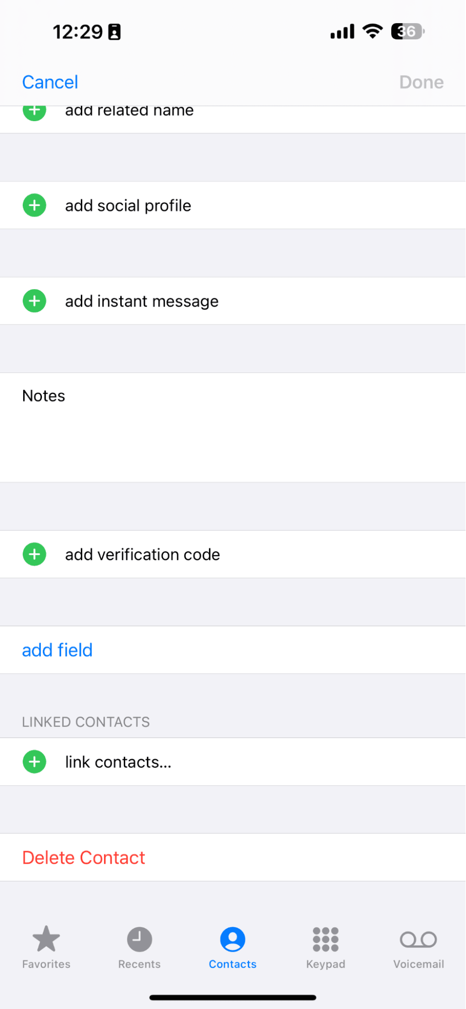 編集(右上)を選択し、リンクされた連絡先セクションまで下にスクロールします。