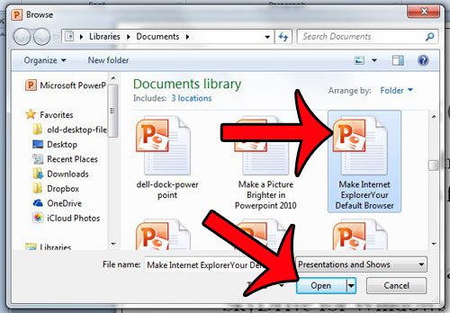 ステップ6:クリックしますPowerPointファイルを開きますウィンドウの右側にある列のオプション。