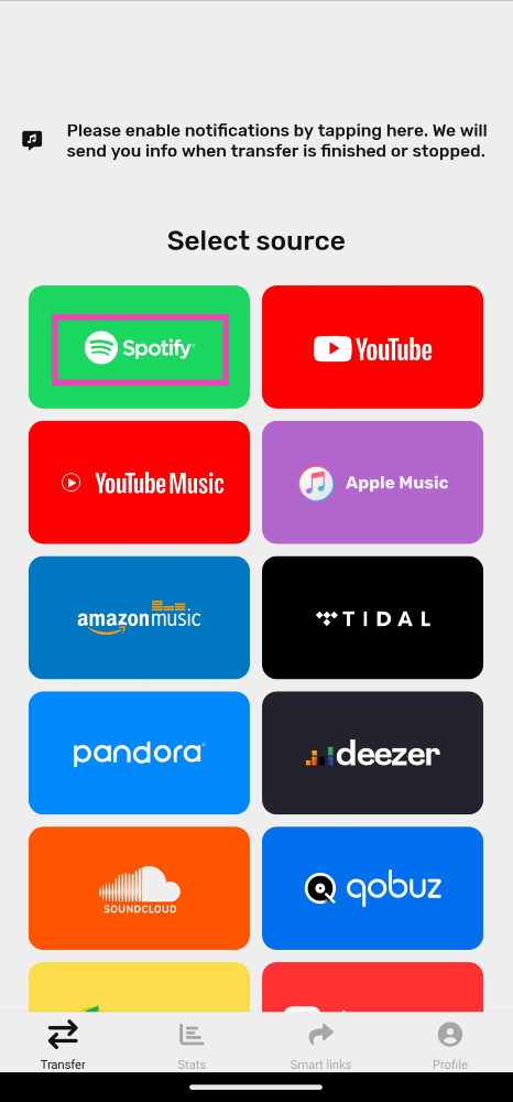 ステップ3:次のページで、Spotifyとして選択しますソースプラットフォーム。