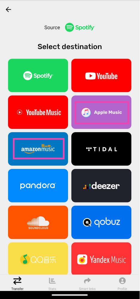 ステップ3:Amazon/Apple Musicをあなたとして選択してください行き先。