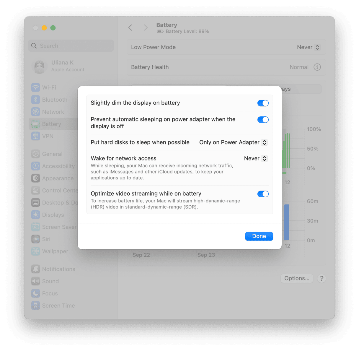 - 低電力モードの隣に、バッテリーのみを選択します。