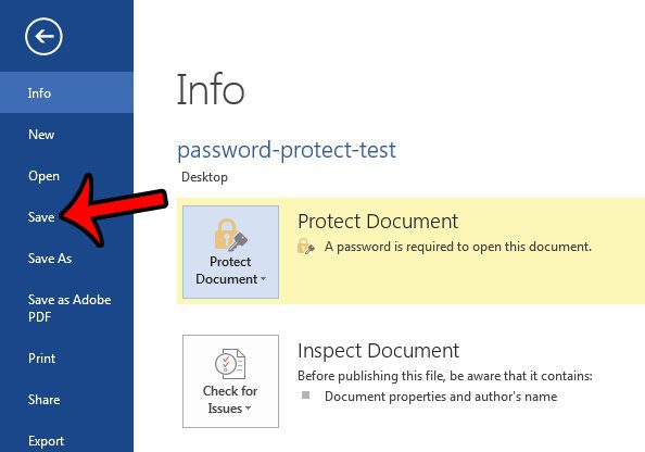 - クリックします保存パスワードでドキュメントを保存するために、ウィンドウの左側にあるオプション。
