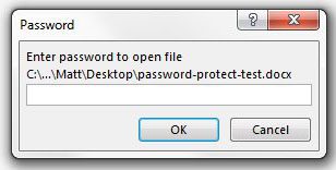 これで、ドキュメントを閉じることができます。次に開くときは、以下に示すようなパスワードダイアログボックスを入力する必要があります。