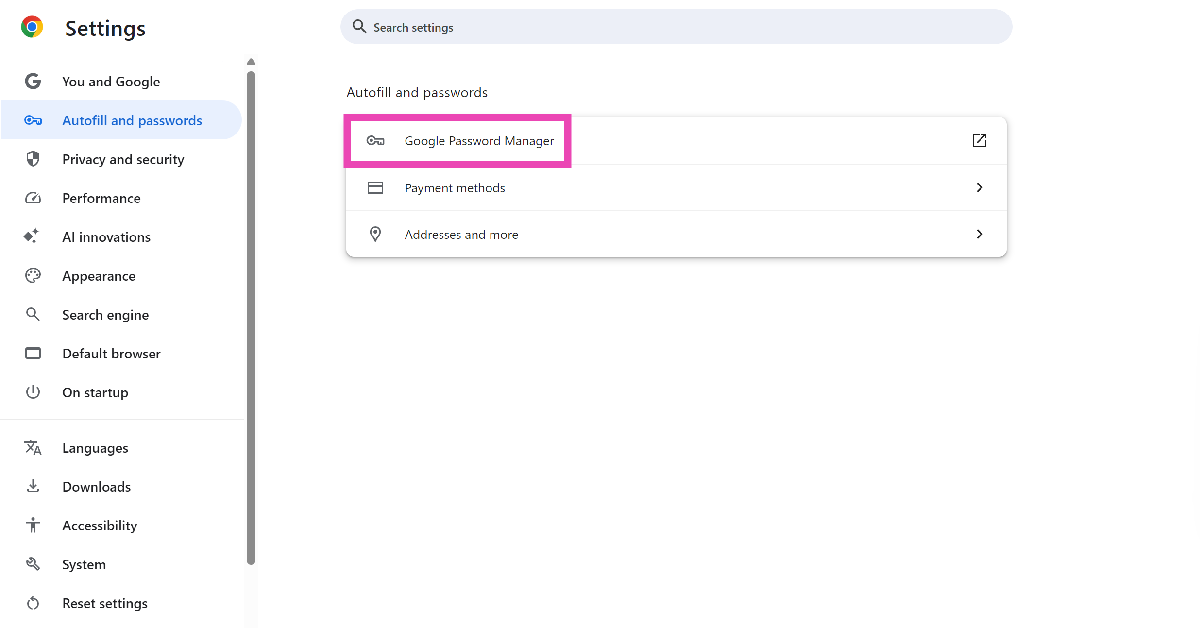 ステップ3:クリックしてくださいGoogleパスワードマネージャー。