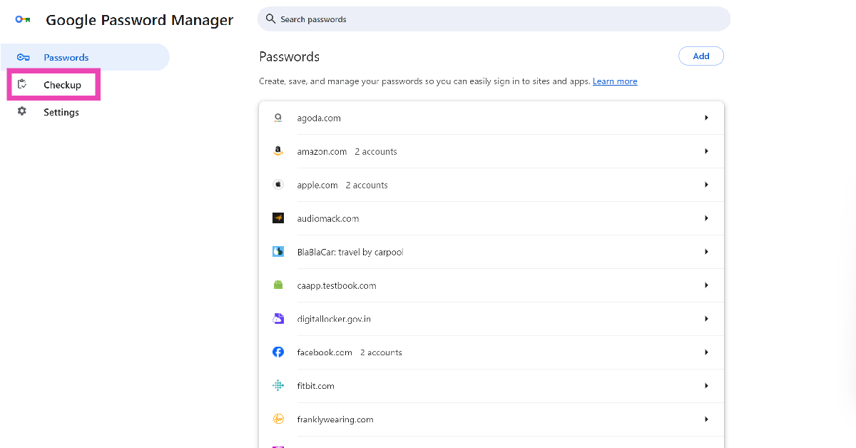 行きますGoogle Chrome>設定> AutofillとPasswords> Google Password Manager、およびサイドバーから「チェックアップ」を選択します。パスワードマネージャーは、保存されたパスワードの安全チェックの実行を自動的に開始します。
