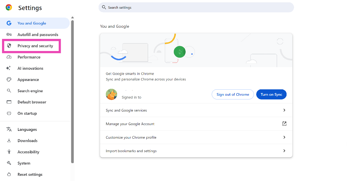 ステップ2:選択しますプライバシーとセキュリティサイドバーから。
