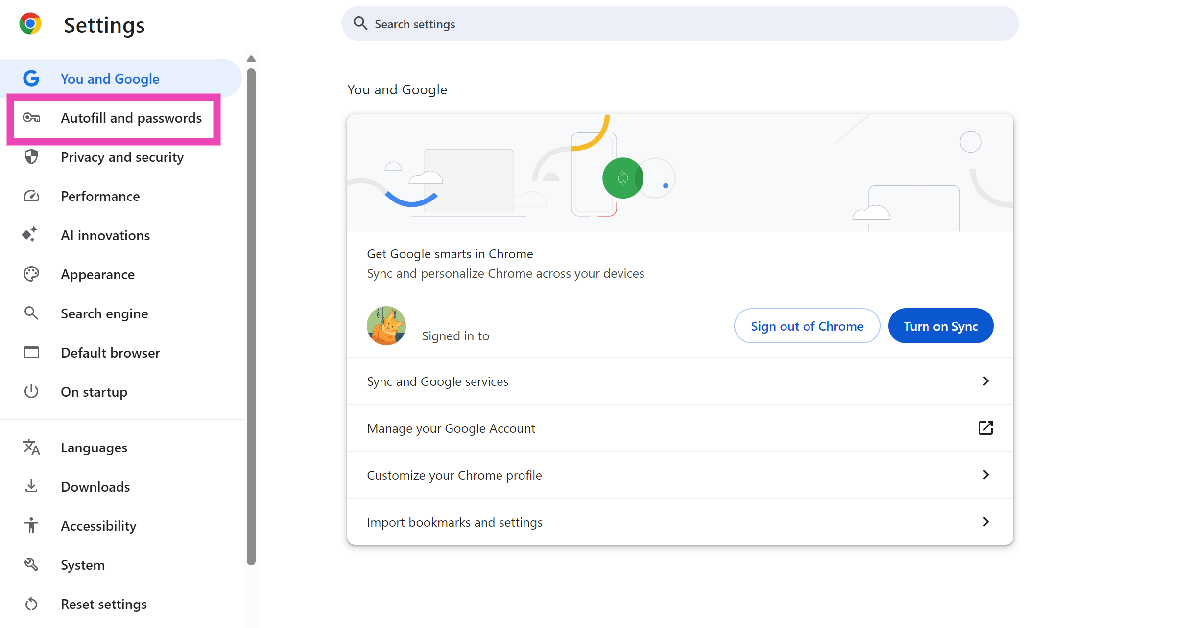 ステップ2:選択しますオートフィルとパスワードサイドバーから。