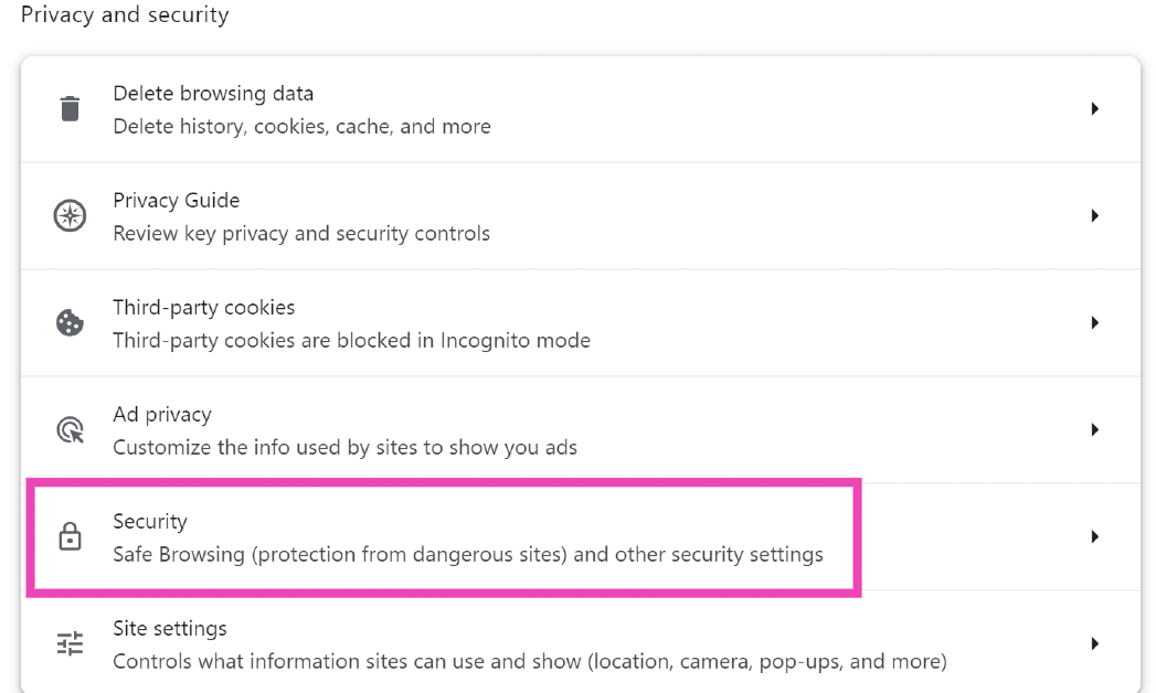 Google Chromeは、保存されたパスワードのいずれかが違反で見つかった場合に警告できます。行きますGoogle Chrome>設定>プライバシーとセキュリティ>セキュリティそして、「データ侵害でパスワードが侵害された場合、警告」の横にあるトグルスイッチをオンにします。