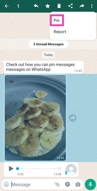 WhatsAppを使用すると、チャットで最大3つのメッセージをピン留めできます。これには、テキスト、画像、リンク、音声ノート、投票が含まれます。