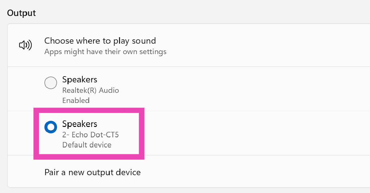 ステップ3:拡張しますサウンドをする場所を選択してくださいカテゴリと1つを選択します出力デバイス。