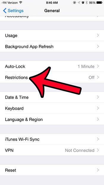 ステップ3:下にスクロールして選択します制限オプション。