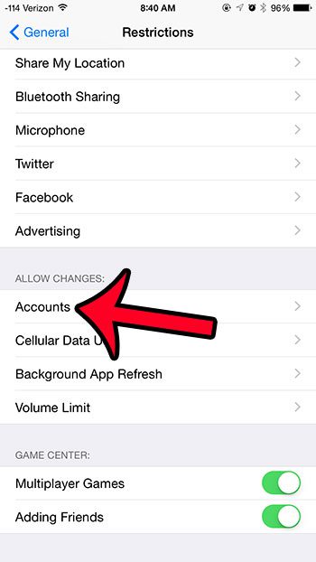 ステップ7:下にスクロールして選択しますアカウント下のオプション変更を許可します。