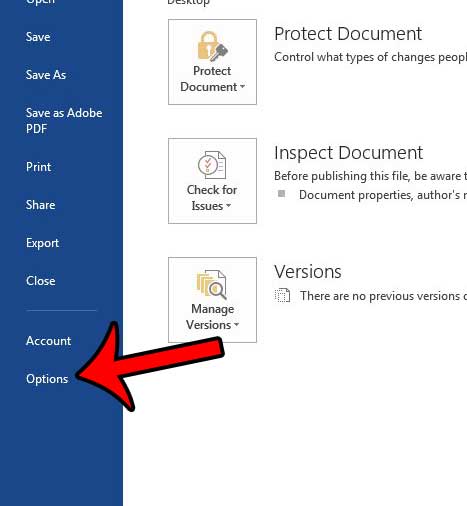 ステップ3:クリックしますオプションウィンドウの左側にある列の下部にあるボタン。これは新しいものを開きます単語オプションウィンドウ。