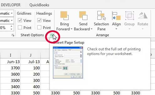 ステップ3:小さなものをクリックしますシートページのセットアップ下部の右隅にあるボタンシートオプションリボンのセクション。