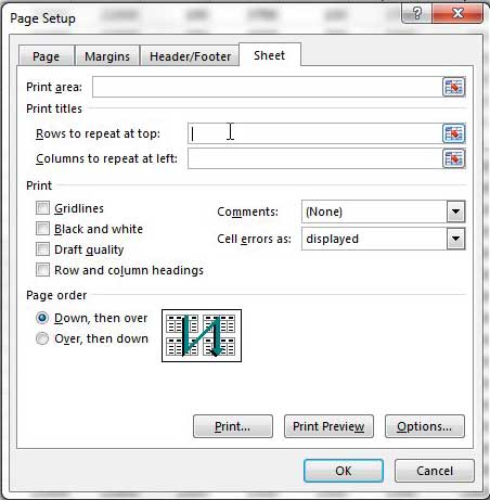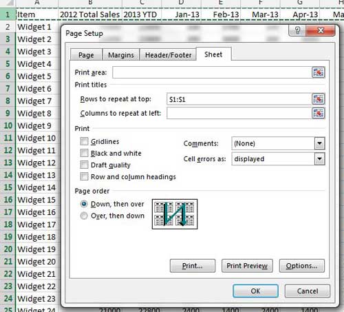 ただし、すべての印刷ページの上部にスプレッドシートの一番上の行を印刷するExcel 2013で設定を構成することで、読みやすくなります。