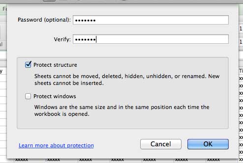 - 構造とウィンドウを保護するかどうかを選択し、クリックしますわかりました。