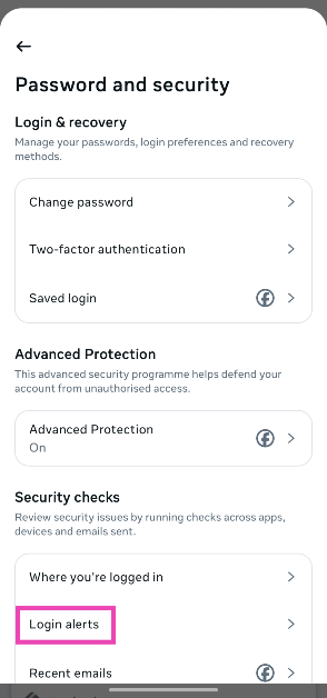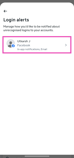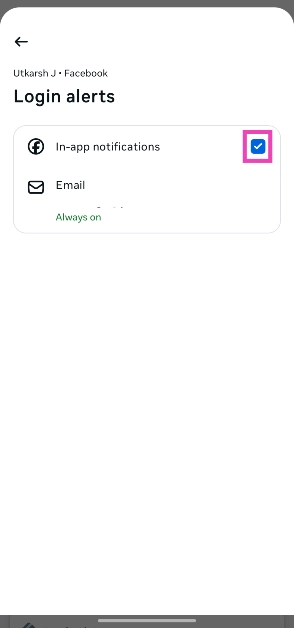 行きますFacebook>設定とプライバシー>プライバシーセンター>アカウントの管理>パスワードとセキュリティ>ログインアラート、そして、「In-Appアラート」の横にあるチェックボックスをタップします。