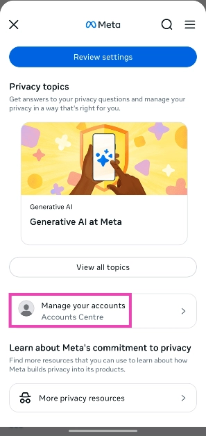 ステップ3:下にスクロールしてタップしますアカウントを管理します。