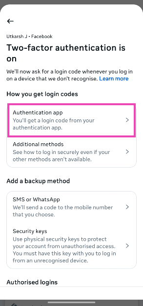 ステップ10:を取得しますログインコード優先認証アプリからFacebookに入力してください。