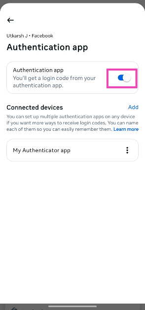 ステップ9:次のトグルスイッチをオンにします認証アプリ。