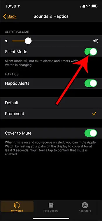 最後に、iPhoneのApple Watchアプリを介してサイレントモードを入力できます。