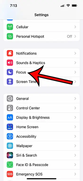 ステップ2:下にスクロールして選択します集中メニューからオプション。