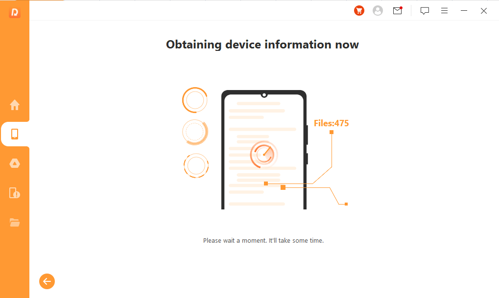 その後、AnyRecover(Android)は、デバイスの分析と自動的にファイルの取得を開始します。少し時間がかかるかもしれません。辛抱強く待ってください。