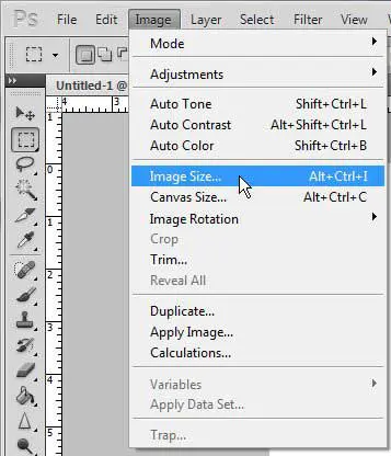 ステップ1:クリックします画像ウィンドウの上部で、クリックします画像サイズ。